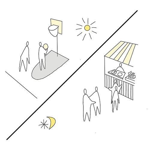 Streets can be (temporarily) used differently along the various moments of a day, week or month. The logic of shopping and school streets can be applied on a range of other urban streets.