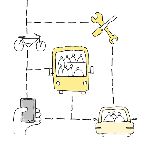There are many forms of public transport. It is important to implement and integrate these systems into the street space as part of the public space. Adaptation for dedicated lanes or of frequency and speed, comfortable and safe waiting places, reliability, and punctuality are important factors for good public transport. New technology can also facilitate public transport/shared mobility modes.
