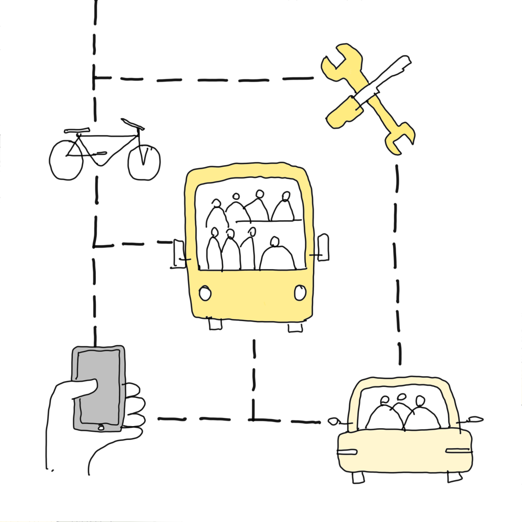 Mobility innovations such as MAAS (mobility as a service), personalised public transport (last mile) or platforms of shared mobility can be an opportunity to redesign urban streets. One shared car can replace four or five regular cars.