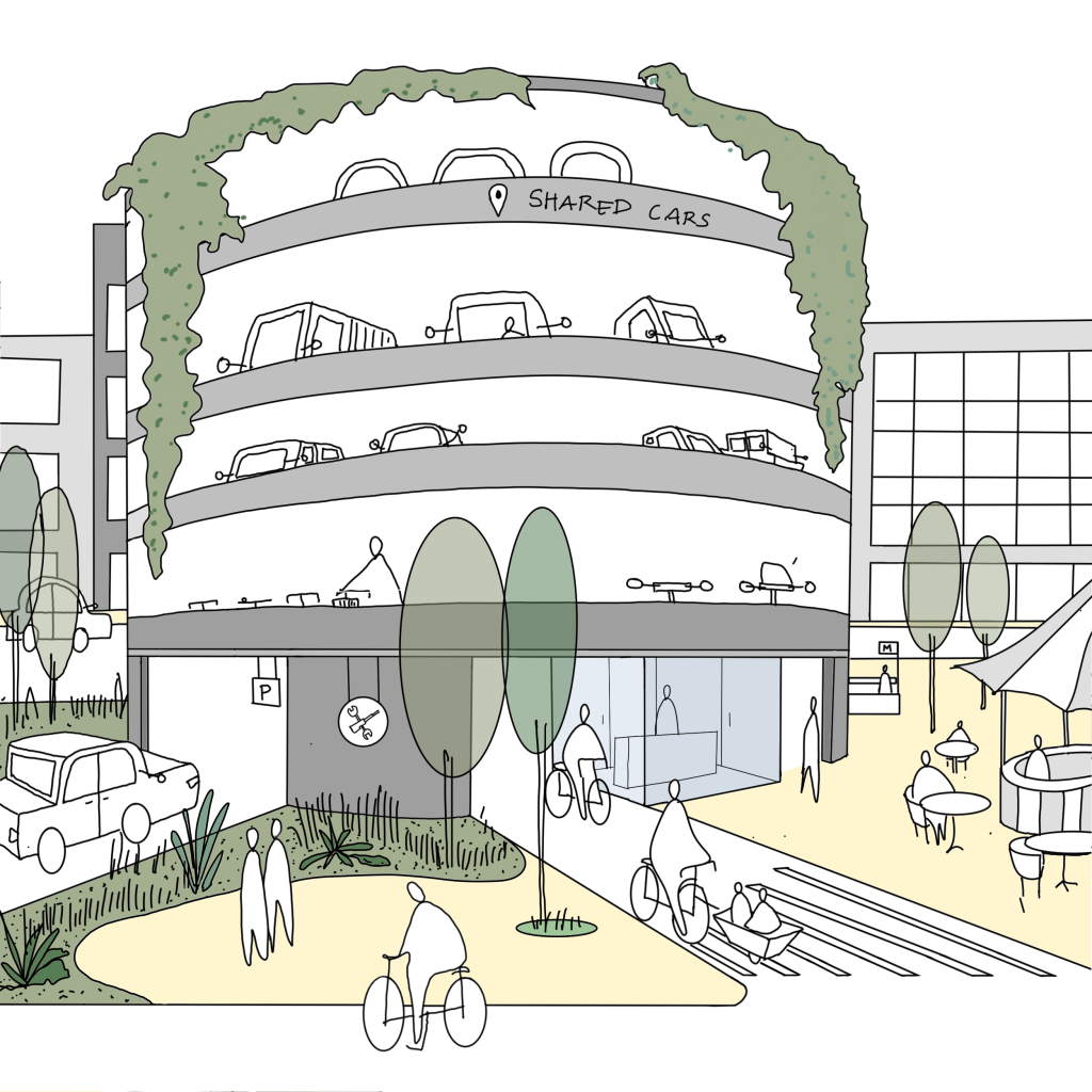 Within the whole of the mobility network, mobility hubs form an important role in the integration and in connecting various subsystems and scales with each other. These places or streets can be designed as urban places / community buildings.