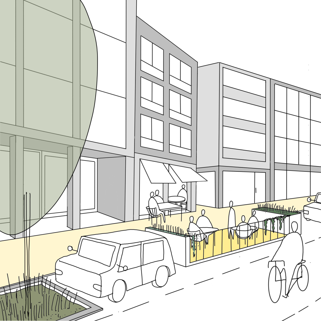 Cars dominated often more than 75% of the available street space, including lanes for driving and parking. Reducing parking space creates a whole range of other possible uses and space for many activities. It is important to assure accessibility for all, for disabled persons and for delivering/ loading and unloading. Herein the curb, design and regaulations, plays an important role.