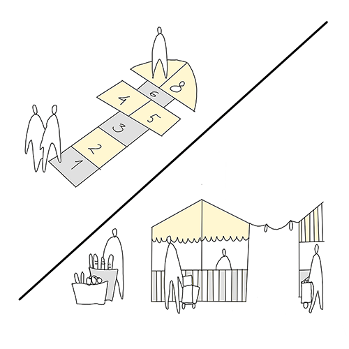 Periodical events, from a play street to a music concert, need a certain basic infrastructure (electricity, traffic controlling objects, security service, etc.). This can be designed in an ambulant manner or can be part of the foundational design of streets..