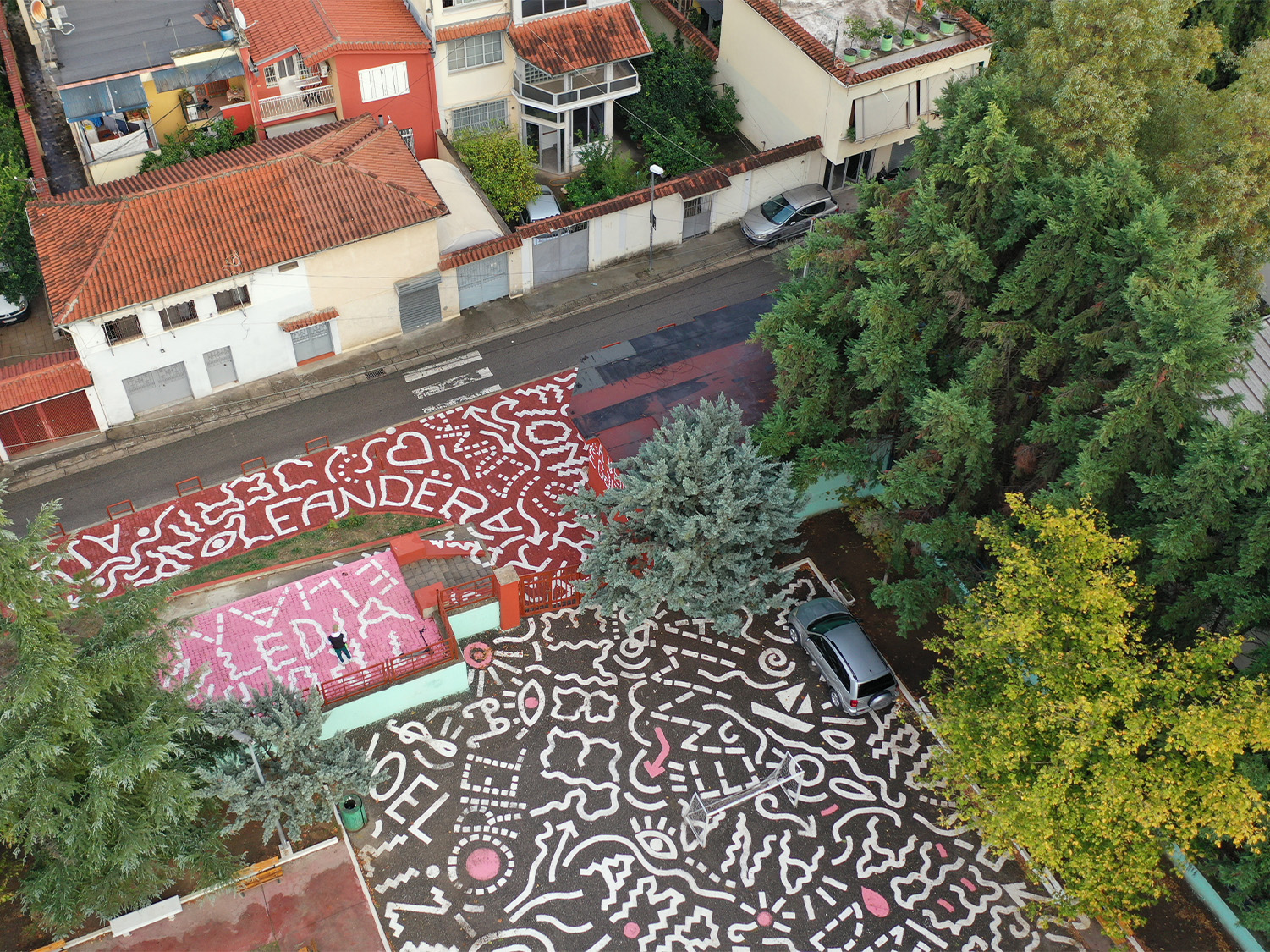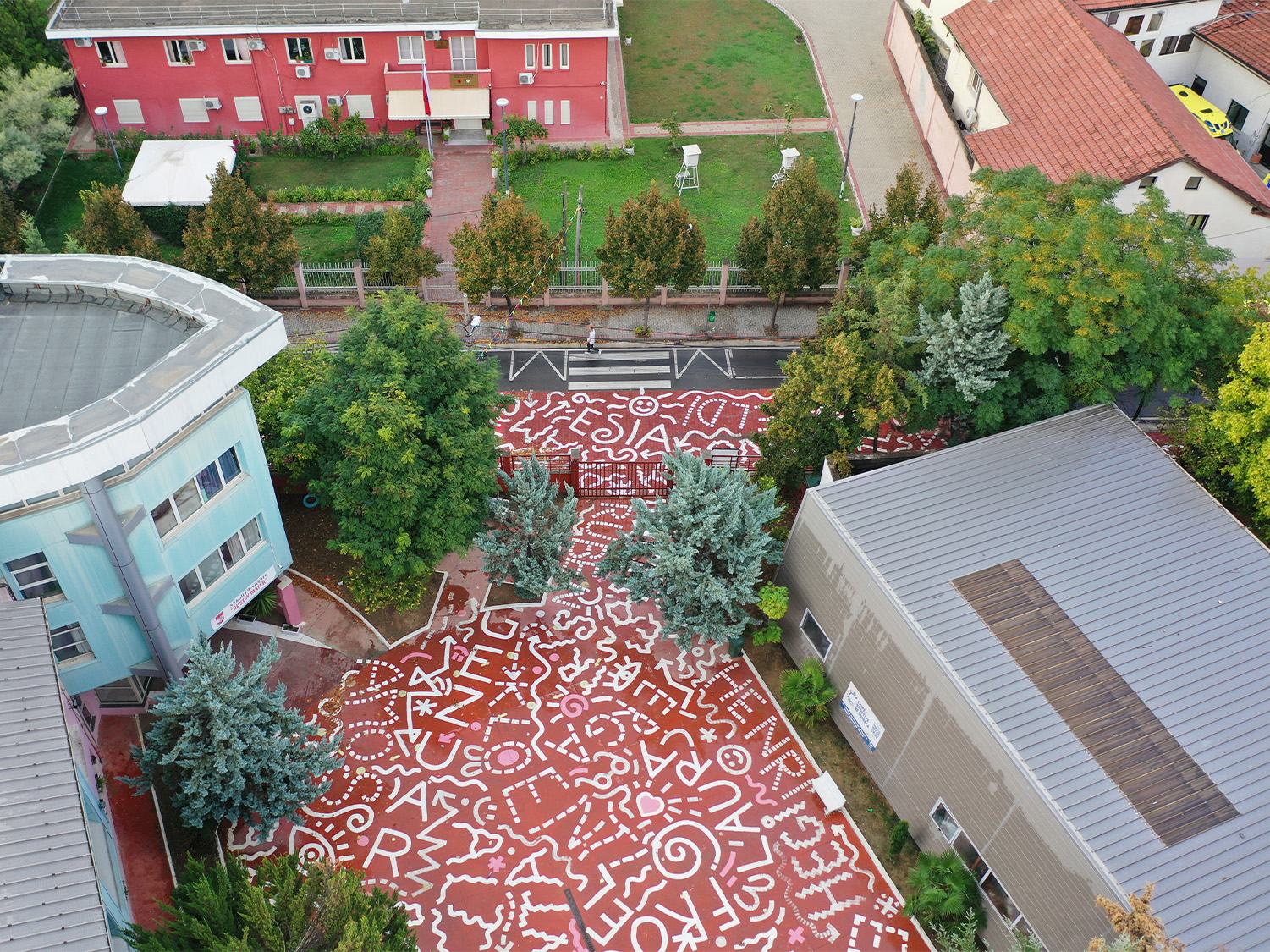 A child-centred and participatory approach was fundamental to the project. Students were actively involved in the design process, choosing colours, patterns, and drawings for the pavement, which fostered a sense of ownership and civic identity. Teachers, parents, and local residents also participated, helping ensure the space reflected community needs and strengthened social ties.