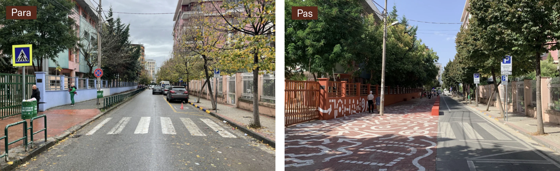 In 2022, the Municipality of Tirana, in collaboration with Qendra Marrëdhënie, implemented the first permanent school street in the city, located in front of Edith Durham School. This intervention addressed both traffic safety and broader social challenges in the neighbourhood, where fast-moving vehicles, lack of pedestrian infrastructure, and limited public space previously undermined children’s safety and community well-being.