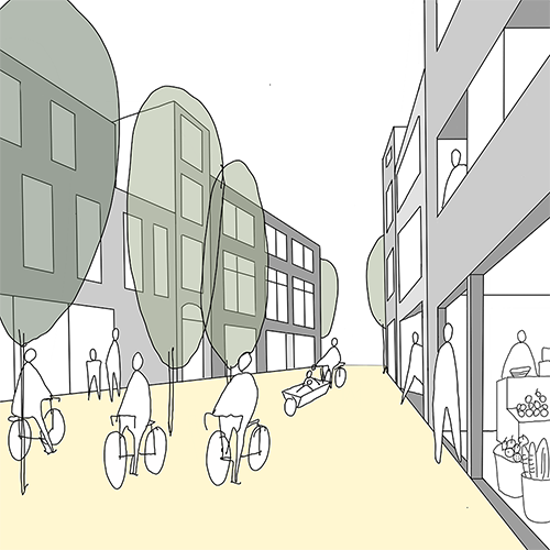 Imagine streets without any cars or other large motorised vehicles. In a bike street everything goes by bikes: moving, parking, accessibility, delving, loading & unloading, small emergency assistance. Of course, in a good harmony with pedestrians.