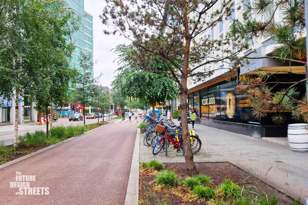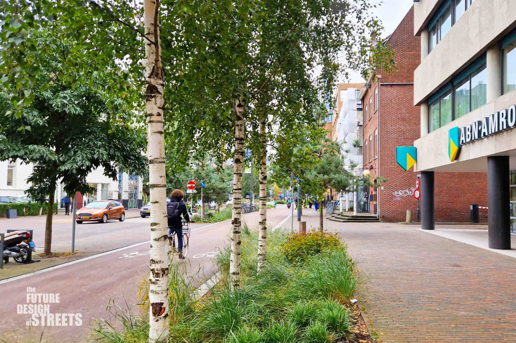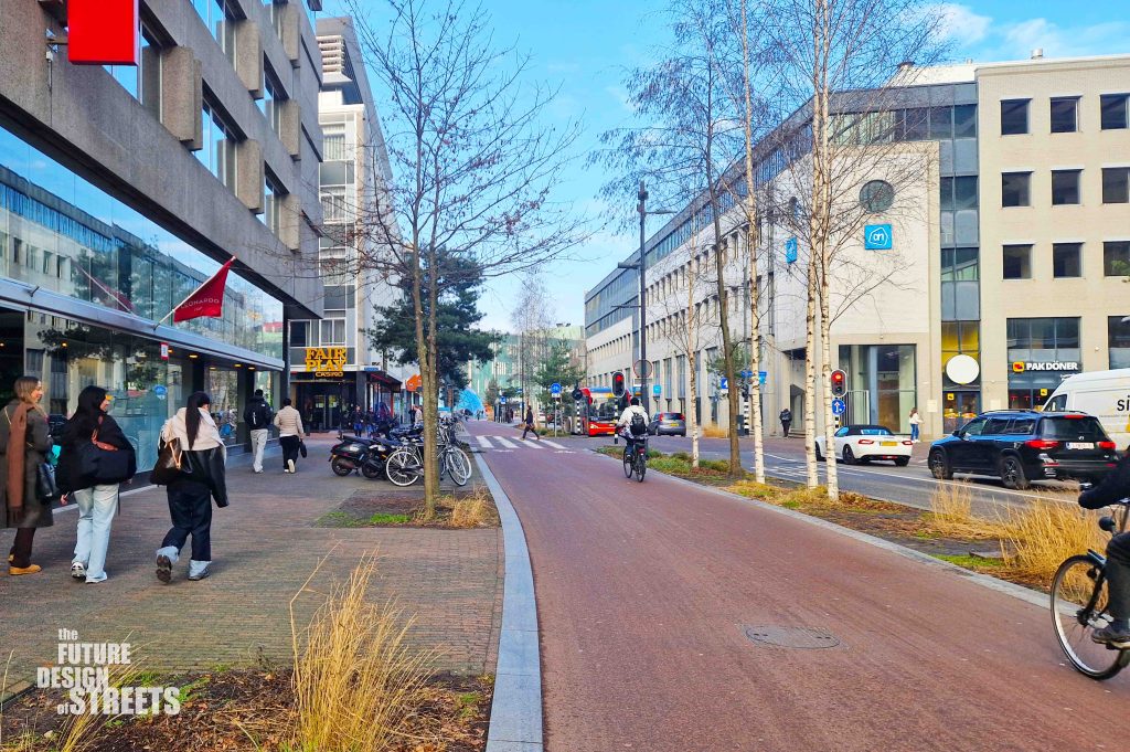The project aligns with Eindhoven’s broader municipal agenda to address climate change and urban resilience. By incorporating permeable paving, extensive tree planting, and linear planters, Vestdijk now contributes to stormwater management and flood mitigation. The new greenery not only enhances biodiversity but also reduces urban heat, improves air quality, and moderates microclimates during hot summer periods. These interventions are part of a city-wide effort to integrate streets into Eindhoven’s blue-green infrastructure, helping the city adapt to rising temperatures and increasingly intense rainfall events.